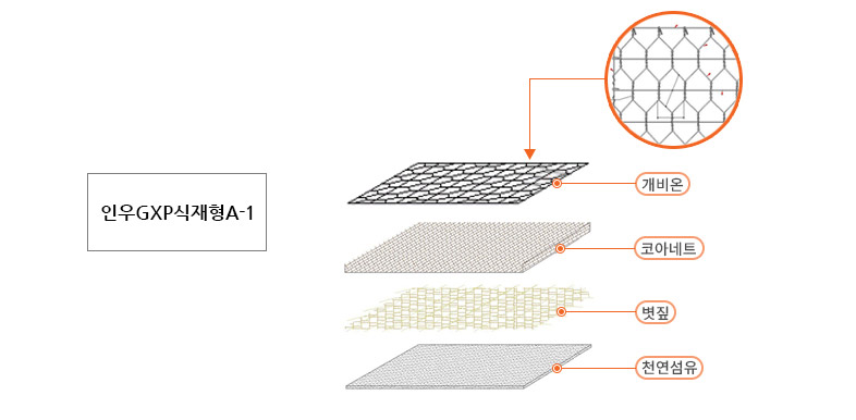 A-1 천연섬유 + 볏짚 + 코아네트 + 개비온 + XP형 고정핀 + 녹화재